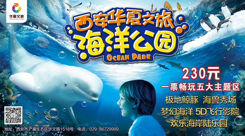 中国最大的民俗海洋馆来啦!西安华夏文旅海洋公园,强势登陆西安浐灞!以海上丝路为主线,世界首创将地域民俗完美融入全球各地海洋文化,集游乐观赏、科普教育、海洋文化于一体,拥有极地鲸豚、梦幻海洋、海兽秀场、飞越丝路探秘及欢乐海岸5大场馆、15个特色文化主题区、超1000种、30000只海洋生物、物种规模西北第一、中国最大白鲸、西北最大鲨鱼、西北唯一极地企鹅、西北唯一海象表演、西北唯一5D飞行影院......西安华夏文旅海洋公园带给您前所未有的海洋奇幻之旅!